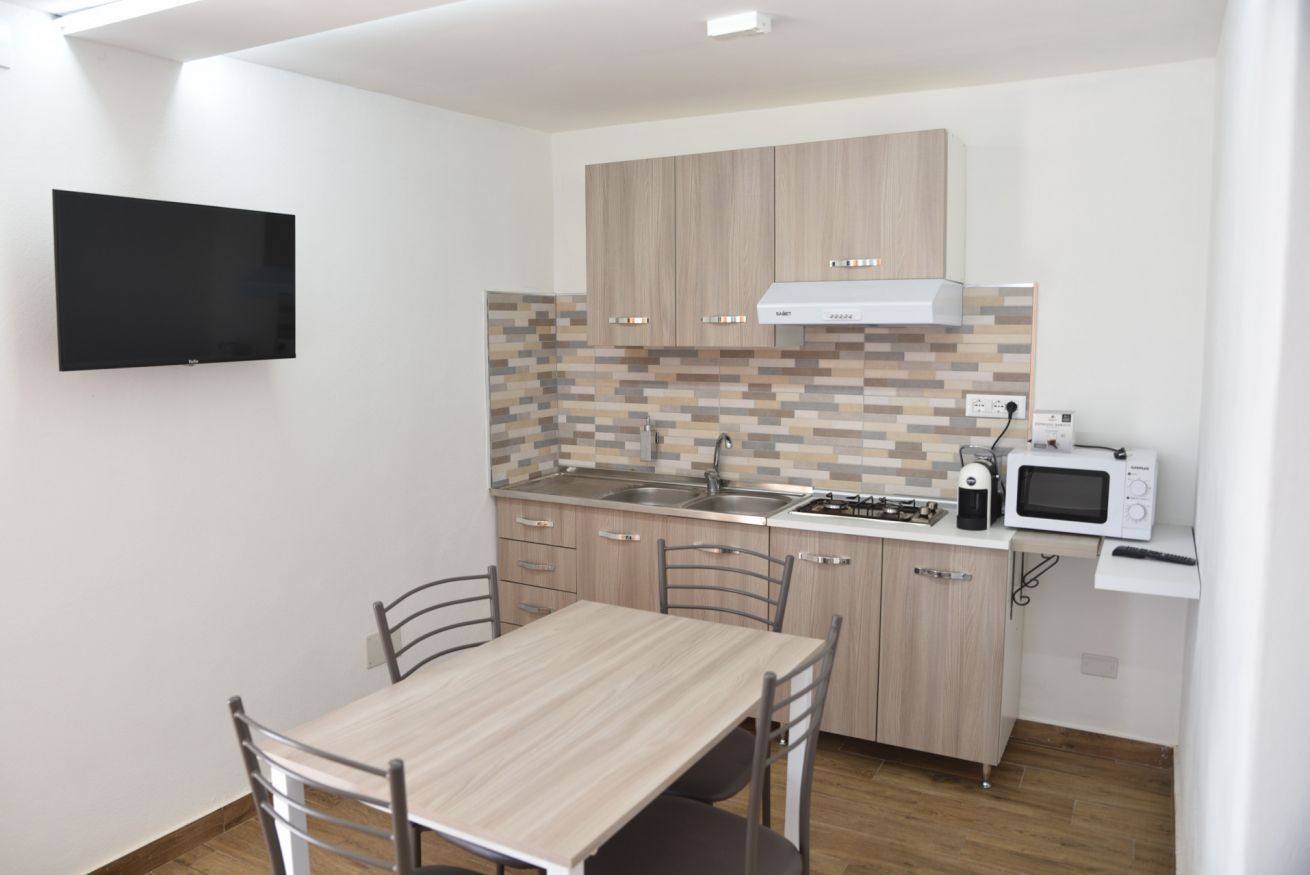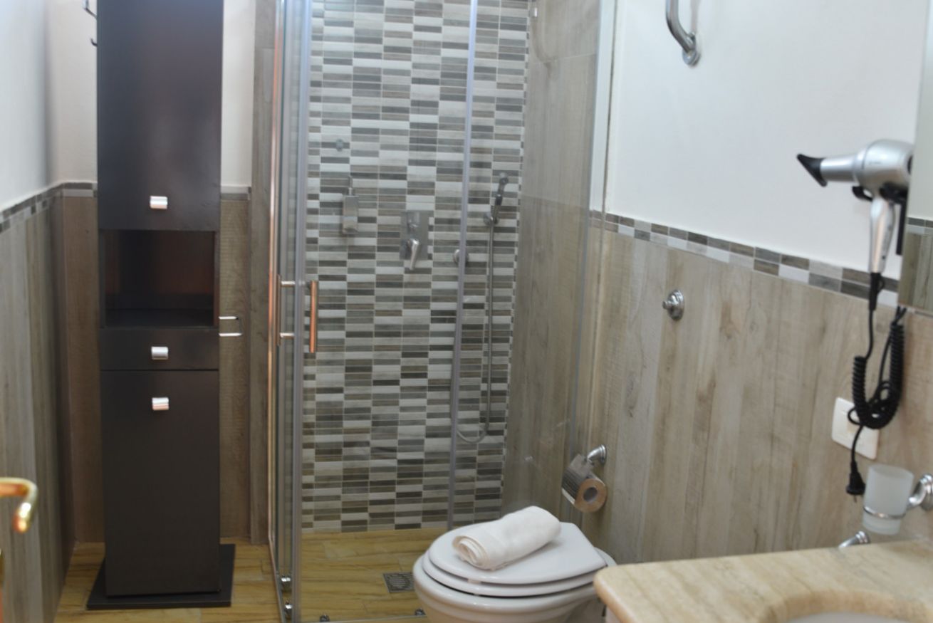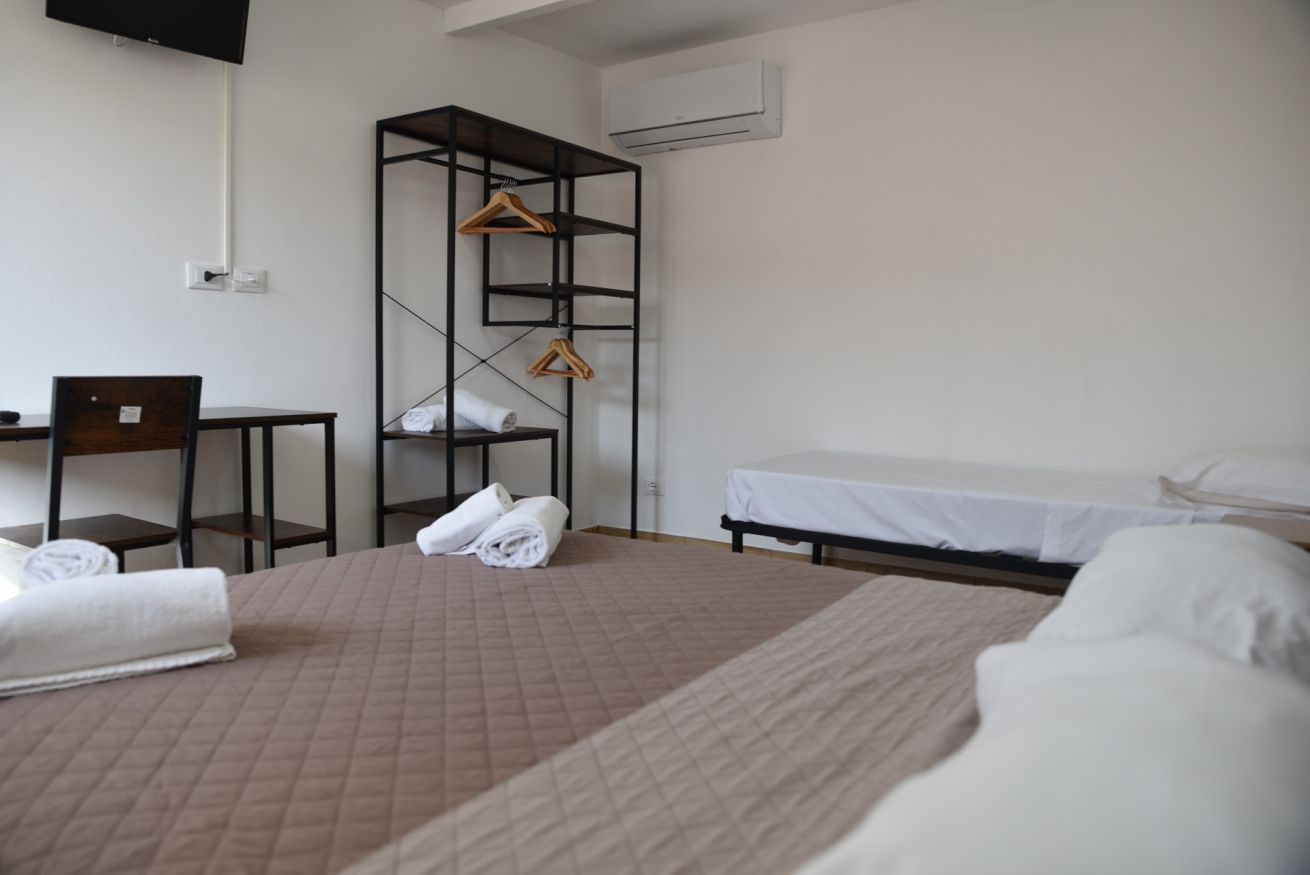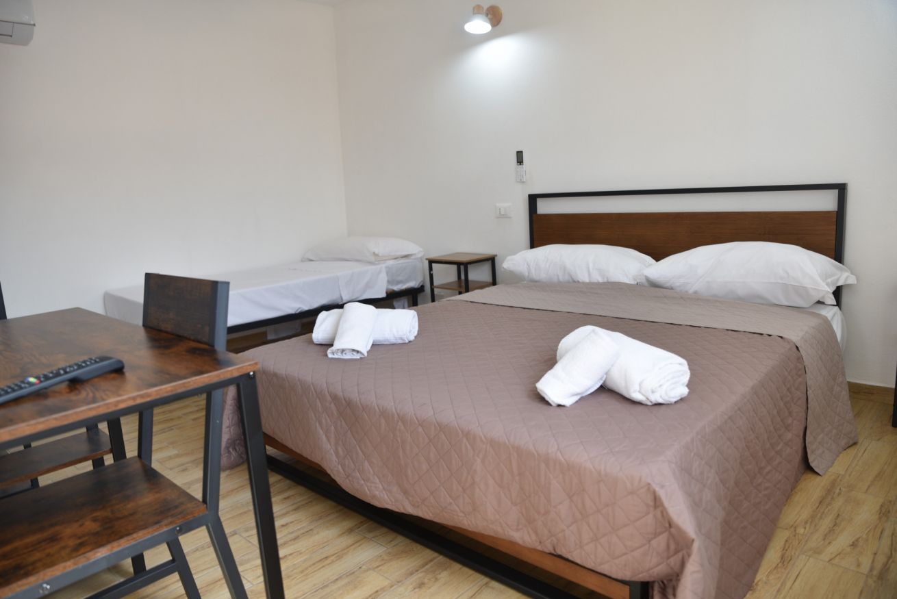 Villa con una camera matrimoniale, una camera tripla e cucina per un massimo di 5 persone. Ogni camera è con bagno privato con doccia.